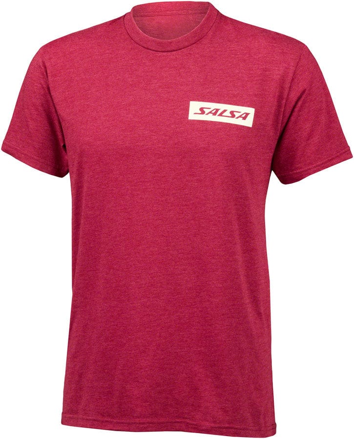 Cool comfortable casual: this Salsa logo tee has you covered. Maybe it’ll be your new favorite bike shirt perhaps you’ll pack it as an extra layer on tour or it could get you in the Adventure by Bike spirit while plotting your next big ride.60/40 combed ring-spun cotton/polyester blend Side seams Tear-away label