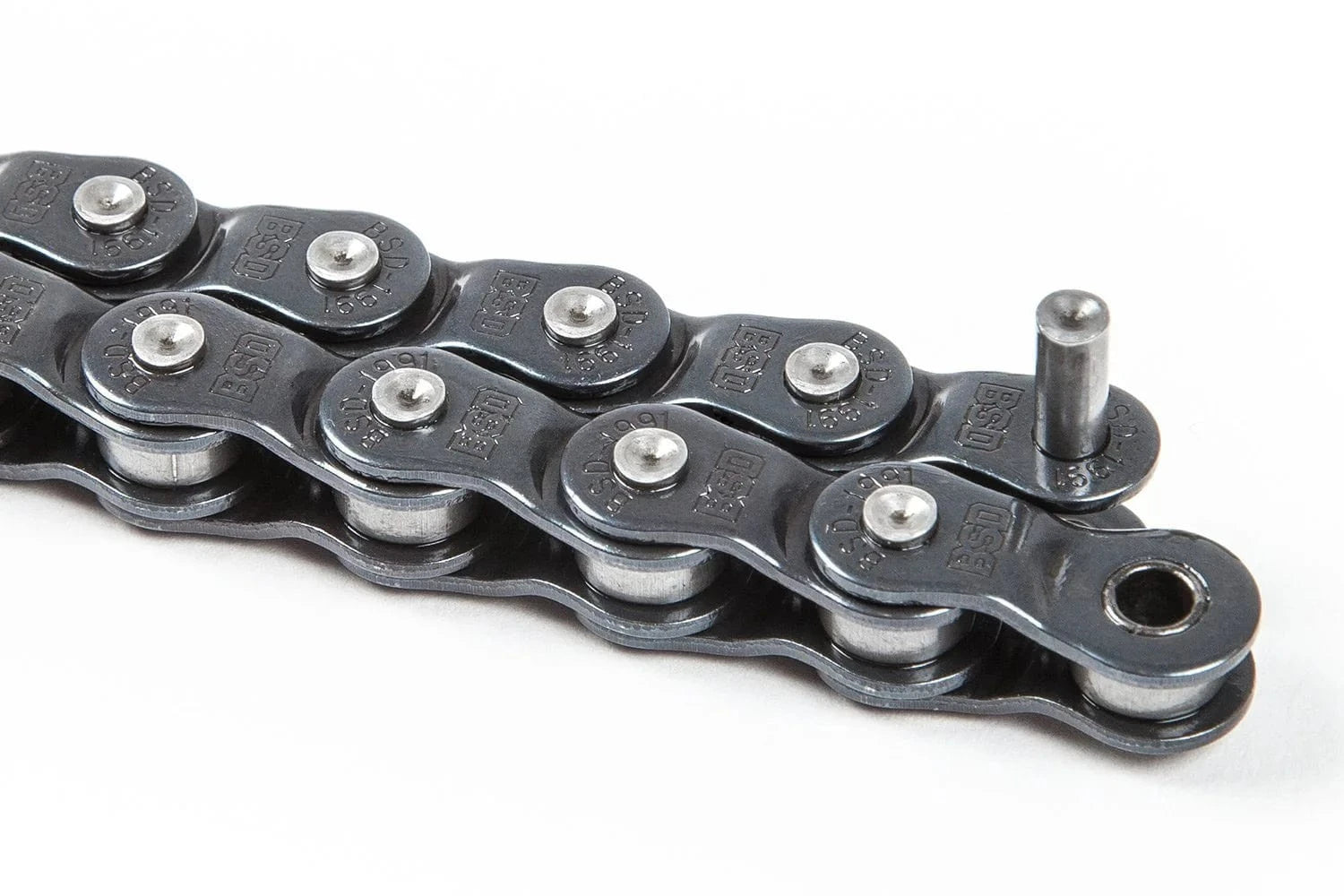 A super tough halflink chain with rustproof and teflon coating, stamped BSD logos and mushroomed pins. Compatible with 8t drivers.