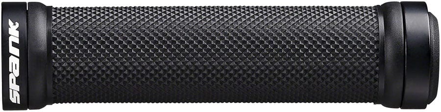 Spank Spoon grips slim low profile design and grip pattern enhances grip. Double locking alloy rings fixing the special tacky rubber compound.Two anodized alloy clamp rings plastic safety end plugs micro diamond pattern