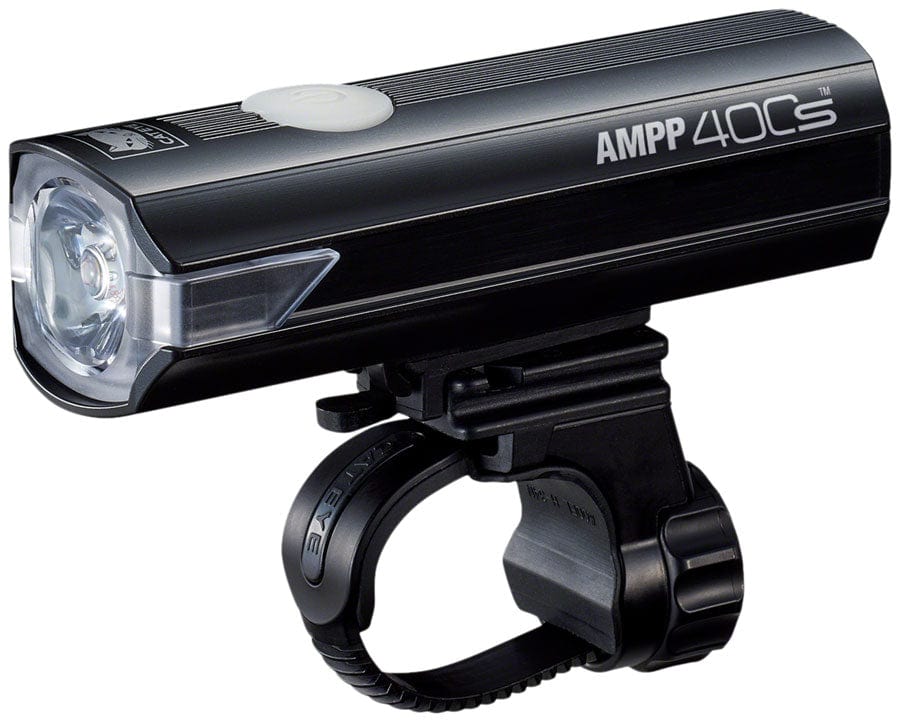 The CatEye AMPP400S model features USB-C recharging five modes including a new low mode offering 8 hours at 100 lumens and enhanced operability with a larger button. It has a maximum output of 400 lumens with a 60-hour runtime controlled lumens and a sleek durable design. The device turns onto high mode with a double click and provides excellent side visibility. Additional features include a low battery indicator turning red at less than 20% and the FlexTight (H-34N) mount.