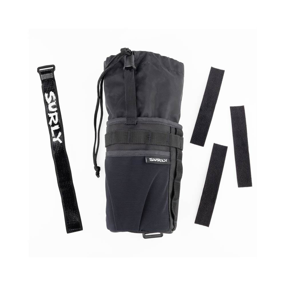 Designed for versatility, the Surly Dugout Bag mounts effortlessly onto any handlebar and frame, ensuring a snug fit with its four connection points. Whether you're carrying 3 pounds of cool-looking rocks or a 1-liter beverage of your choice, this bag has got you covered.