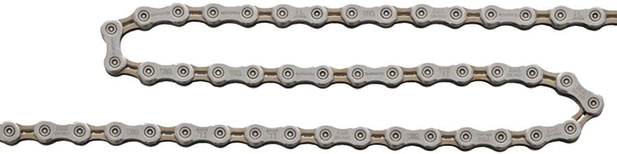 Shimano Tiagra CN-4601 10-Speed ChainsFor Ultegra 6703 and 105 5703 triple drivetrains please see 10-Speed Hyperglide non-directional chains Hyperglide 10-Speed chain Not compatible with Shimano 10-Speed Dyna-sys mountain bike drivetrains Directional inner and outer plates designed for better contact with gear teeth allow smooth shifting even under high load conditions Chromized rivet pins improve wear resistance Perforated plates for reduced weight