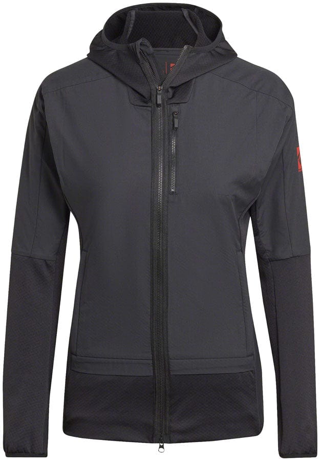 The Five Ten Fleece Wind Jacket is your partner for winding trails and chilly days on the mountain bike. The adidas WIND.RDY design features lightweight fleece fabric plus an overlay at the front and upper arms to block the wind. The slim fit keeps a low profile with room to accommodate elbow pads and there's a hood that fits on under your helmet for extra warmth. Reflective details shine in low light.Reflective bar print on the back Sleeves are compatible with elbow pads Elasticated hood fits under the helmet for cold weather conditions Five Ten Fleece is made of recycled material Sheds less micro-fibers than adidas traditional fleece fabric Overlay of wind ready fabric on front upper part and shoulder to protect from wind