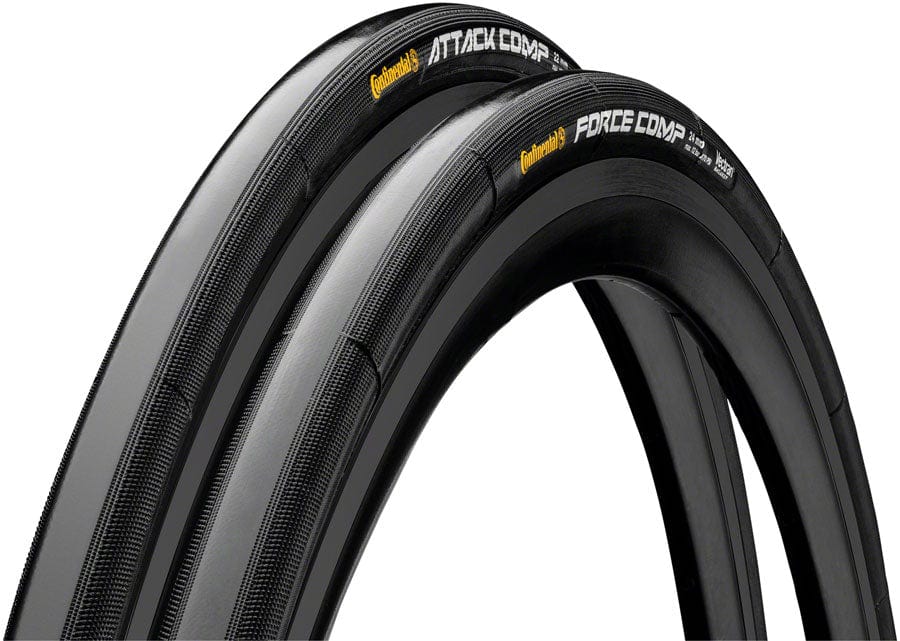 Continental Attack/Force Comp Tire Combo - 700 x 24/22 Tubular Folding BLK BLKChili Vectran Breaker Pair