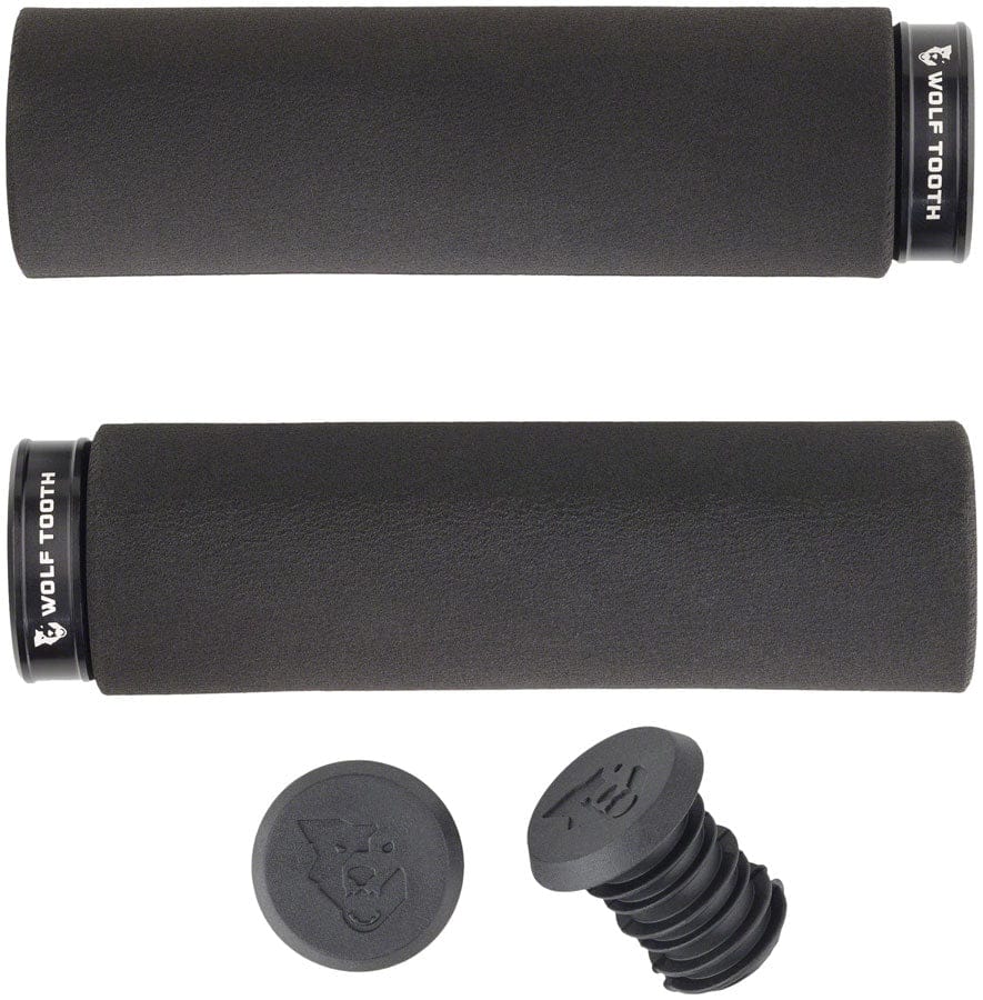 Fat Paw Lock-On Grips bring the same texture and feel of the popular Fat Paw silicone foam grips to the lock-on grip format. This means that they are comfortable easy to install and have excellent vibration-damping qualities. The installed diameter of Fat Paw Lock-On Grips is the same as the Fat Paw silicone foam bike grips at 36mm. They are compatible with all standard mountain bike handlebars. Grips are made with black silicone foam and come with anodized aluminum collars Includes Wolf Tooth rubber bar plugs 132mm long and 36mm diameter Bolt in collar is tightened/loosened via 3mm hex wrench Compatible with matching Alloy Bar plugs or Wolf Tooth EnCase System sold separately