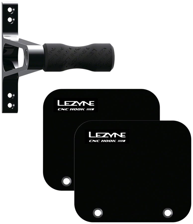 Lezyne Alloy Wheel Hook is a modern industrial 3-piece bicycle storage system constructed from a durable CNC-machined aluminum. This includes a stylish wall-mounted wheel hook and two tire plates to prevent scuffing. The wheel hook features a rugged anti-slip cover which secures the bike and safeguards its rim. A one-time installation allows for simple space-saving bicycle storage for indoor spaces garages or wherever you prefer to hang your bike. It’s compatible with all standard bicycles—from BMX to downhill bikes—and can hold up to 70 LBS (32 KGS). Mounting hardware included.Cnc machined plate and anti-slip rubber wrapped wheel hook 3 pcs set 8 pcs hardware included