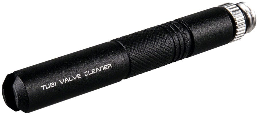 Precision CNC machined aluminum Tubi Valve Cleaner allows to remove or tighten two-piece Presta valve core and clear tire sealant clogs from valve stem for tubeless tire maintenance. Compact size easily fits in a jersey pocket or saddle bag.