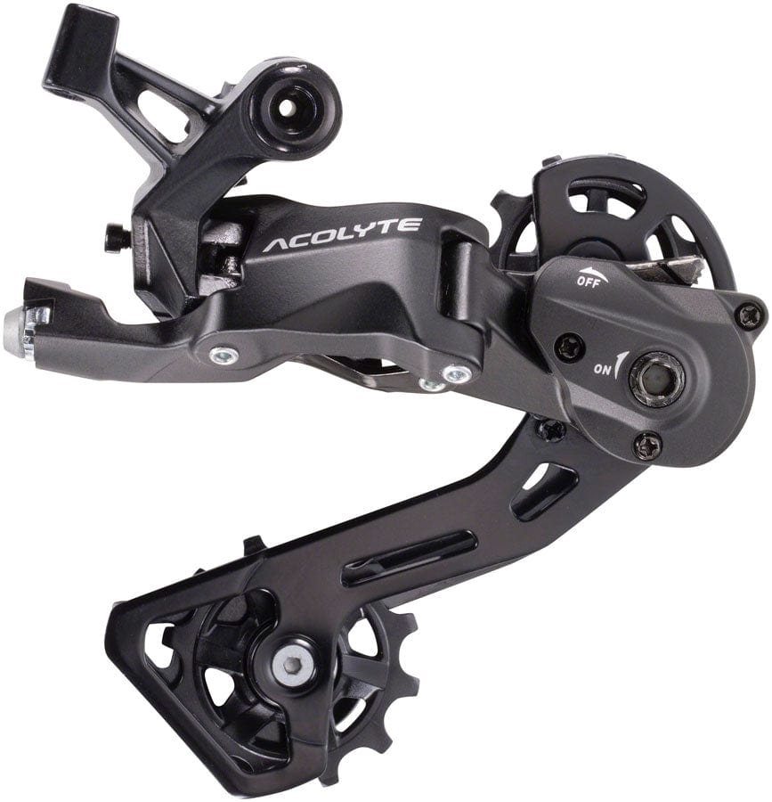 The heart of this microSHIFT Acolyte derailleur is the innovative SpringLock system. By pairing a customized linear rate high tension spring and a dual stage activation mechanism we’ve developed a system that can provide substantial chain security when you need it and can be turned off when you don’t. To engage the clutch turn the engagement bolt clockwise until it clicks. There’s no way to overtighten the bolt. To disengage the clutch for wheel removal flip the switch. It’s that simple.Innovative SpringLock chain retention keeps chain in place over rough terrain Direct path cable routing for smooth and responsive shifting Compatible with 12-42t and 12-46t 8-speed cassettes Compatible with Acolyte shifters only