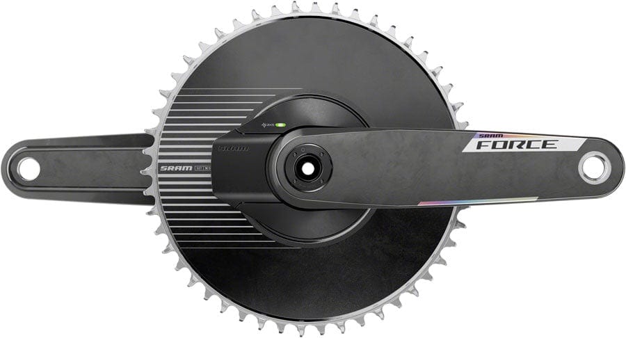 Measure your ride power data more accurately than ever with the Force 1 AXS power meter carbon crankset. It’s the lightest and stiffest integrated Force power meter we’ve developed yet. It’s accurate to +/-1.5% unaffected by temperature changes. The Force 1 crankset features light and stiff Force 1 carbon crank arms and long-lasting aluminum 50t X-Sync aero chainring.Power meter is fully integrated into the spider for lighter weight Power readings are accurate within +/-1.5% and aren’t affected by climate conditions during a ride Measures right and left leg power balance Carbon crank arms and aluminum 50t X-Sync aero chainring results in a lighter weight stiffer more durable crankset DUB bottom bracket adds durability and simplicity (Bottom bracket sold separately) 45mm Chainline