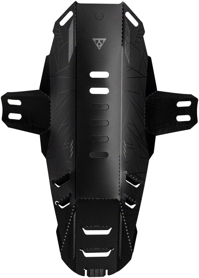 Topeak D-Flash Fork Mount Fender. These flat-printed origami inspired polypropylene fenders are ultralight stylish quickly attach and ready to go when wet weather arrives. Reflective printing adds safety at night while muti-mount positions and hook and loop straps allows fenders to fit a wide range of bikes.