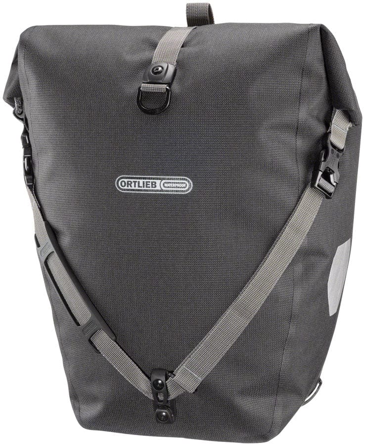 The multifunctional Urban Back-Roller is an ideal single bag for bike riders who are looking for a spacious waterproof bike bag to accompany them on their way to work or school. Made of a special blend of Cordura fabrics the bag has a textile appearance that is a perfect match for both casual and business attire.Classical rear pannier (single) with roll closure Sturdy soft-touch PU-laminated Cordura blend QL2.1 mounting system for racks with max. 16 mm tube diameter Reduction inserts for tube diameters 8 10 und 12 mm with anti-scratch function preventing abrasion on the rack Integrated inner pocket and shoulder strap Hooks adjustable without requiring tools Lower hook rail made of two-component hard-soft synthetic with anti-scratch function protecting the rack Two highly reflective 3M Scotchlite reflectors