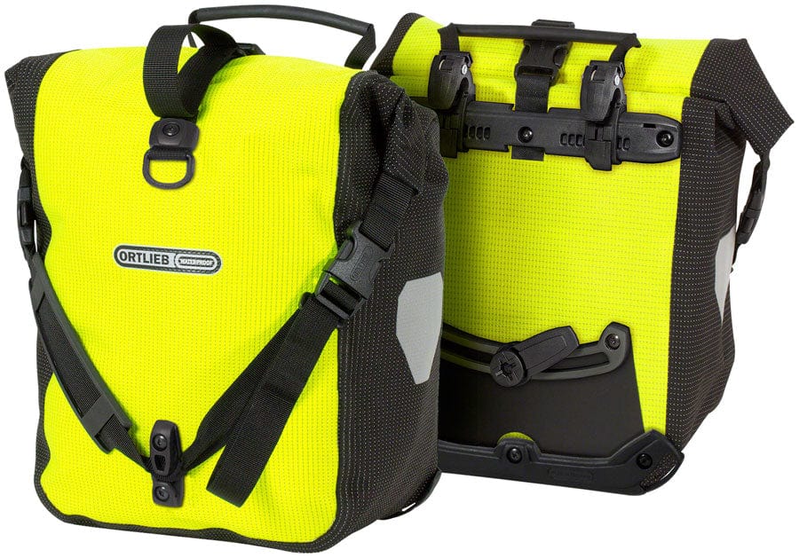 Both the waterproof polyurethane-coated Cordura fabric in neon yellow and the black fabric parts of this bag are densely interwoven with high-luminosity reflective yarn. This composition turns the entire bag into an eminently visible reflector when it is picked up in the headlights of passing cars. The waterproof Sport-Packer is perfectly suitable as lowrider pannier in the front "small" rear pannier or for children's bikes. The QL2.1 fixing offers quick and comfortable singlehanded mounting to the rack.Shoulder strap with snap hook Inner pocket