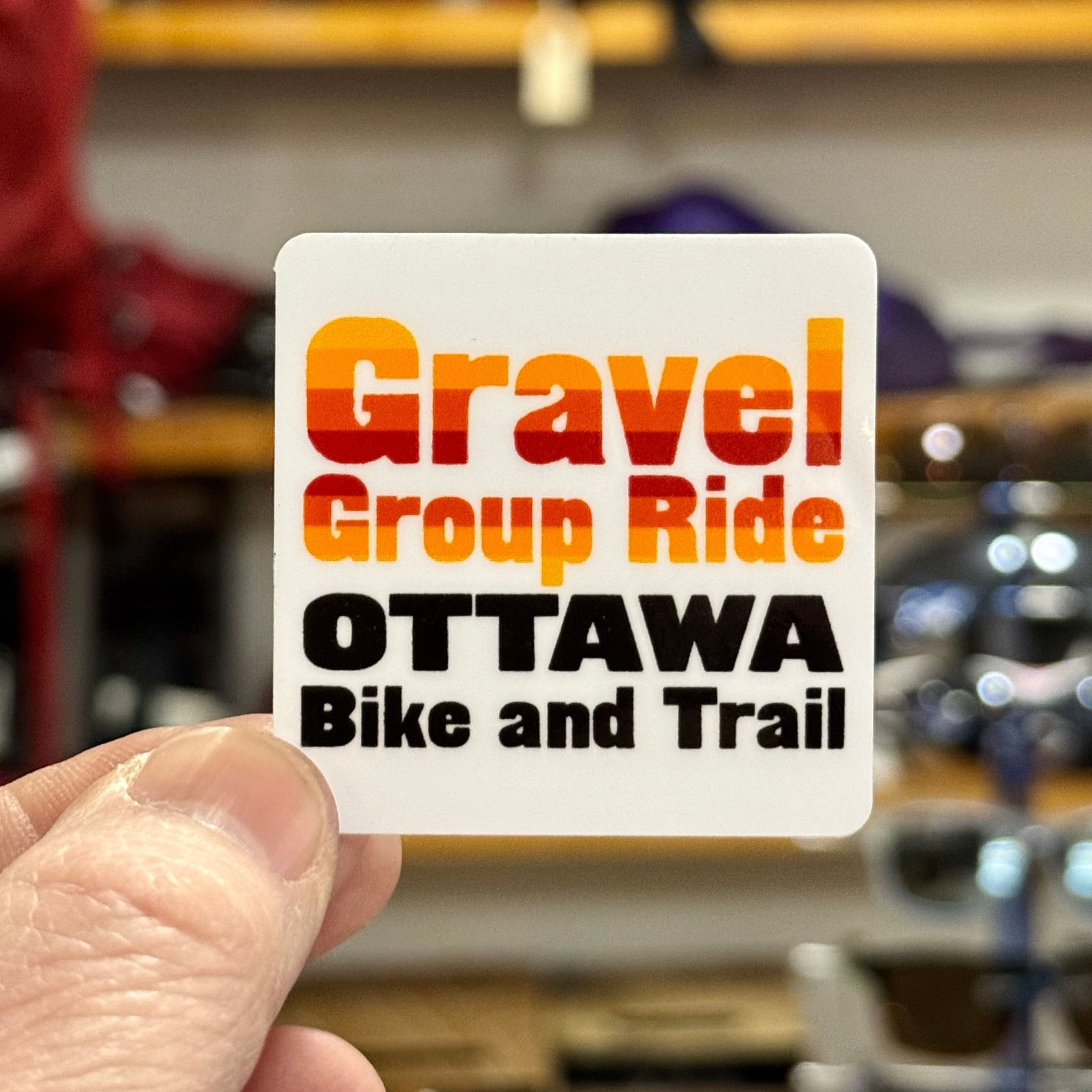 Kickstart your weekend with a sticker that represents the camaraderie and challenge of our Saturday morning Gravel Group Ride. This high-quality logo sticker is perfect for bikes, gear, or anywhere you want to show your gravel riding pride. Designed by Ottawa Bike and Trail, it captures the energy and excitement of hitting the trails with friends on two wheels. Durable, weather-resistant, and ready for adventure.
