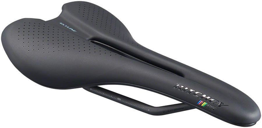 The WCS Carbon Skyline saddle features carbon rails an ergonomic curve that supports the sit bones and a generous cutout to relieve perineal pressure. It's curved two-axis shape features a rise towards the rear of the saddle and some rise into the nose of the saddle making this shape ideal for riders who lack flexibility and want more support.Patented Vector Wing mounting points away from sit bones to reduce pressure and hot spots