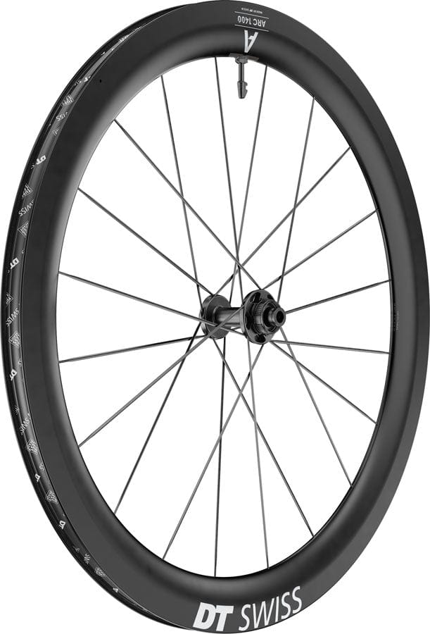 The sophisticated ARC 1400 DiCut wheels represent the latest DNA of the 1400 level of DT Swiss and aero partner Swiss Side. The AERO+ profile rims set a new standard in aerodynamic performance and keep aero drag as low as possible under different crosswind angles. In moderate side wind conditions riders benefit from propulsion through a sailing effect. Reduced wind sensitivity allows riders to maintain a stable aerodynamic position and full control of their bike making these wheels a perfect synthesis of acceleration aerodynamics and handling - even in the most challenging conditions.240 Dicut aero hub with redesigned flanges Carbon hooked and crotchet tubeless compatible rim