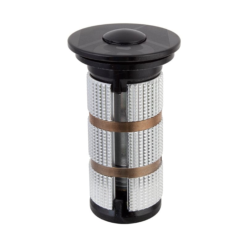 3-piece expander design provides a secure fit within carbon steerer tubes. Low profile alloy top cap included. Ø22-25mm range of expansion. 50mm height reinforces carbon steerer tube beneath the stem. New design evenly distributes headset compression forces. Lightweight AL6061 alloy construction. Stainless steel bolt