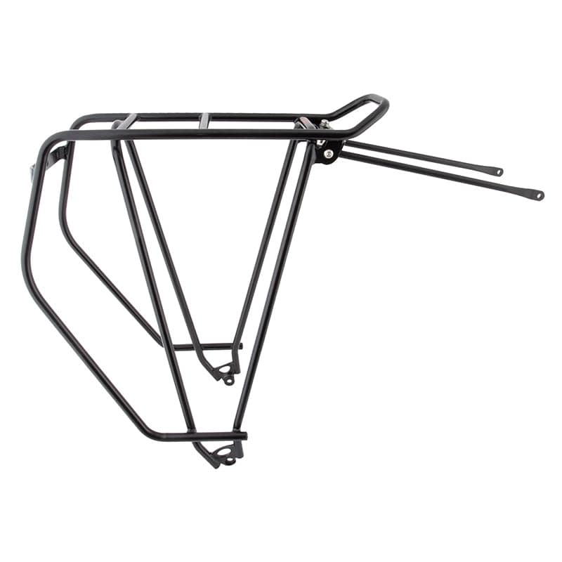 Updated design based on the Cargo Classic with improved lightweight mounting stays and drawn out tubes to protect rear mounted lights from possible impact. Designed to survive years on the road touring. Maximum admissable load of 57lbs although the racks are tested far beyond that. Fits most frame styles and accept most common panniers. Maximum tire width clearance is 50mm or 1.95`