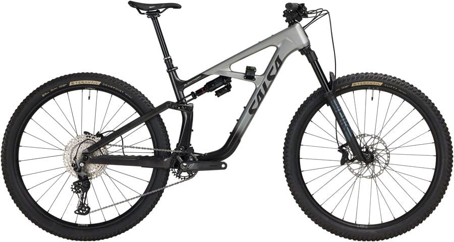 Blackthorn 125 is Salsa’s trail bike. It’s a well-balanced machine for riders who want the speed and agility to handle anything the trail may bring; it’s fluid in the tight sections and precise when navigating techy descents. Designed to bring everything you need for long rides without weighing you down Blackthorn 125 excels at going farther without compromising the joy of the ride.Carbon fiber frame seatstays and chainstays with 6061-T6 aluminum links for durability Split Pivot suspension design features 125mm of efficient travel that’s fully active under braking and supportive throughout its stroke paired with a 140mm suspension fork Split Pivot + design philosophy lets riders switch travel class to the 145mm rear/160mm front travel found on Blackthorn 145 by swapping out shock link shock and fork Rear Flip chip adjusts the head tube angle and bottom bracket height to accommodate varying terrain wheel sizes and personal preference Integrated strap location on frame for tube and multitool Fits two bottles on all sizes Top tube mounts for use with EXP-R Series Trillium Top Tube Bag or K-Edge computer mounts Clearance for up to 29 x 2.5" tires Compatible with mixed wheel sizes Compatible with most coil shocks Molded frame protection