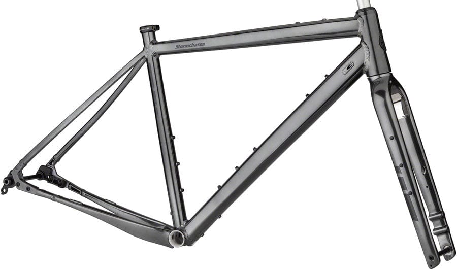 Stormchaser is Salsa’s gravel bike for any and all conditions. Ample tire clearance and single speed-ready Alternator Flat Mount dropouts will see you through the muddiest rides. Suspension fork and dropper post compatibility let you get wild with your route choices.