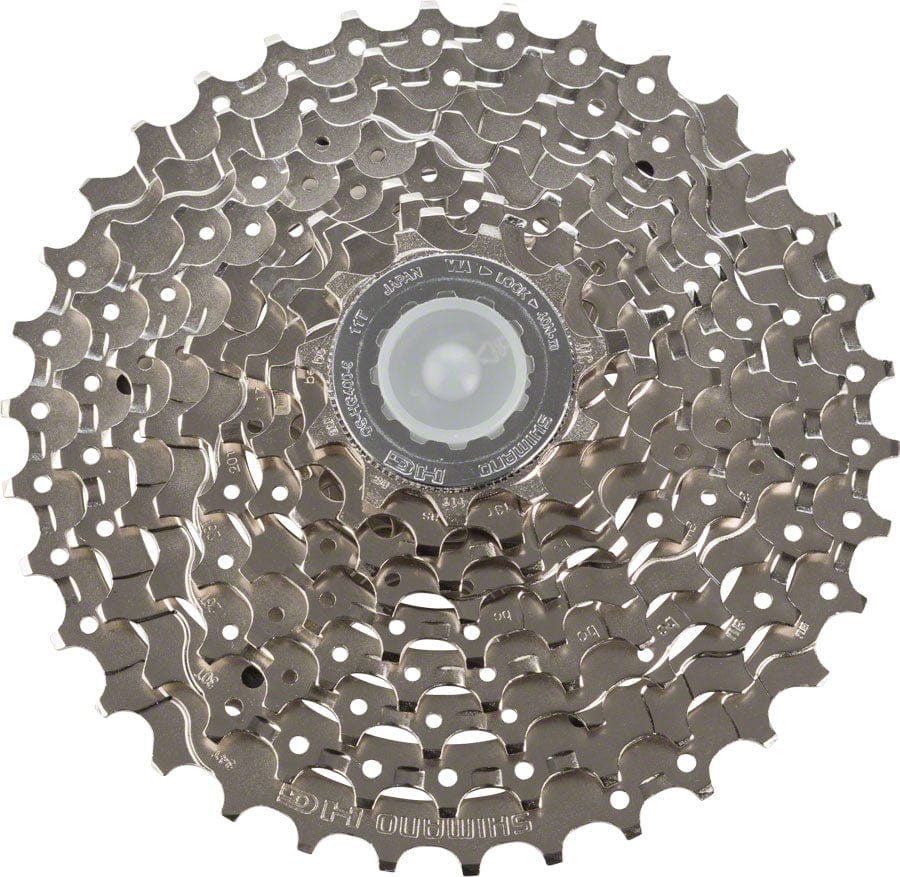 Shimano CS-HG400 9-Speed CassettesNickel plated finish for corrosion resistance Drilled cogs for weight savings Nickel plated steel lockring