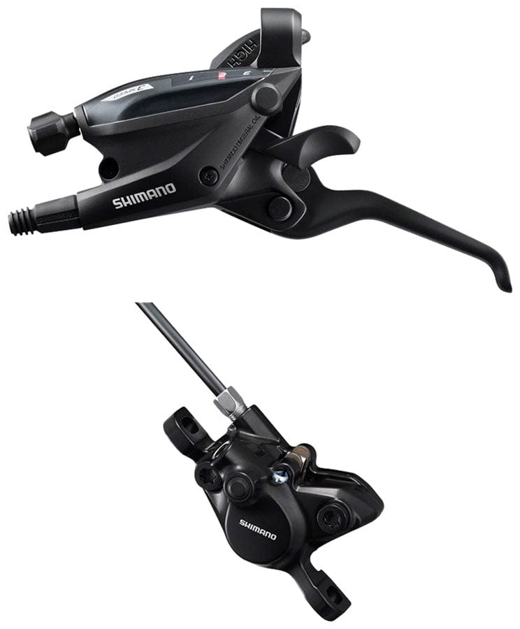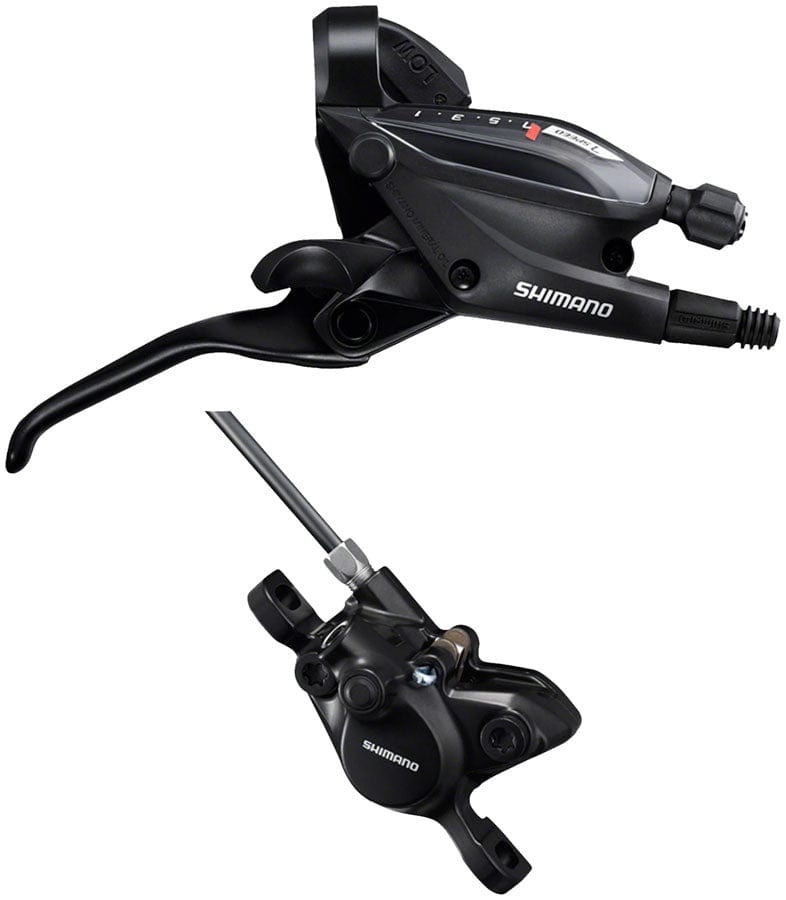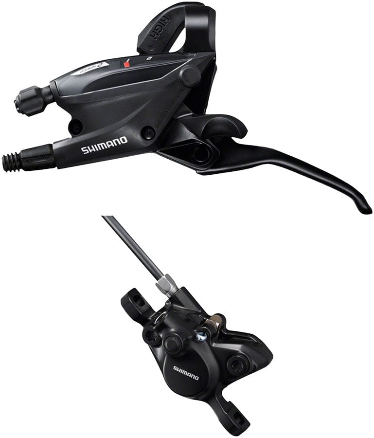 Shimano Shift/Brake lever and disc brake caliper set features an ST-EF505 series EZ FIRE Shift/Brake lever that's paired with a BR-MT200 2-Piston hydraulic brake caliper to match numerous bike styles.EZ FIRE PLUS Shift/Brake levers offers funnel bleeding for easy maintenance and clean cable routing for easy set up simple control and stable brake performance for regular riders 3-Finger alloy brake lever with Reach Adjust offers comfortable operation Clear shift response and light action shift performance Optical Gear Display for easy shift position identification One way bleeding and Shimano hydraulic mineral oil provides easy quick and clean installation 40% wider pad clearance for less pad rattling noise