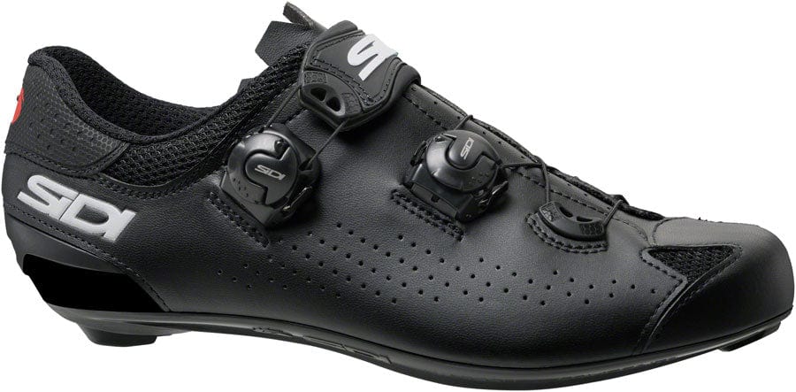 The shoe that combines the best for everyone: whether racing or on a casual ride Genius is simply the best platform for a great day in the saddle. Built on over 60 years of experience in manufacturing cycling shoes Genius is designed on a carbon composite sole that offers the perfect combination of strength and comfort while the Microtech upper adapts to the shape of the foot for superior comfortThe Soft Instep Closure System is a wide anatomically curved strap combined with a soft thermo-formed EVA pad that distributes pressure evenly over the instep area The Soft Instep Closure System is adjustable from both sides to perfectly center the eva pad over a high or low instep Sidi’s Tecno-3 System closure dials in fit along the entire length of the shoe adapting the upper to the shape of the foot for a customized fit The Sidi Mega Last provides Sidi fit and performance to riders who have slightly wider feet The Sidi Mega Last is 4mm wider across the ball of the foot has more volume a higher instep and a wider heel cup Mega lasts are sized EE to EEE Improved all new proprietary Sidi wire material is non-binding for intuitive and effortless on-the-fly adjustments Like most Sidi small parts the Tecno-3 system is serviceable and replaceable The newly designed integrated heel cup is light weight and reinforced to avoid deformations during prolonged strenuous use The Carbon Composite Sole 20 is composed of nylon and injected carbon fiber. The result is a light and rigid sole that is impervious to humidity The central part of the sole is graduated with a millimetric scale to facilitate accurate and repeatable cleat set-up For walkability Sidi cycling shoes include a replaceable polyurethane heel pad