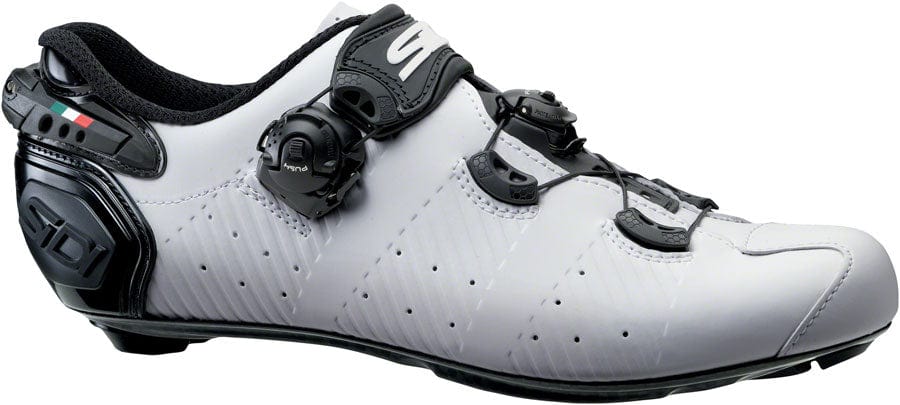 Engineered specifically for athletes who seek maximum foot stability when unleashing extreme power. Ventilated carbon sole with innovative Firmor lateral support system suitable for athletes who need to combine power transfer with greater lateral foot stability. The specially designed dual-rotor closure offers the ultimate adjustment for the perfect level of lateral stability.The Single Tecno-3 system creates a perfect tension balance between the shoe’s internal and external side guarantees an excellent closure adapting to every instep The Adjustable Heel Retention Device reinforces the top of the heel cup and improves the fit by closing the back of the shoe securely around the rider’s heel The heel retention device tightens the top of the heel cup so that the heel is secured during steep climbs and sprints each side of the heel can be adjusted independently for a perfect fit Oval holes extend the adjustment position of the cleat by ± 5 mm and a millimeter scale is included for determine the riders personal cleat position For walkability Sidi cycling shoes include a replaceable polyurethane heel pad. WIRE’s heel pad has a new design and it is very light The Vent Carbon Sole is designed with an integrated vent and air channels for heat dissipation and air flow. The vent can be opened or closed for 4-season comfort