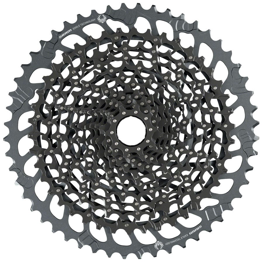 Ride anywhere with this wide range XG-1275 12-speed Eagle cassette that that offers the performance of higher end SRAM cassettes. Fast on the flats. Controlled on the climbs. Dictate your own pace.FULL PIN technology uses lightweight stamped steel cogs held together with high-strength stainless steel pins Open design aids in mud clearance giving you cleaner shifting performance and longer component life X-GLIDE 2 improves both inboard and outboard shifting as well as chain retention The XG-1275 cassette meets durability requirements for E-MTB applications.