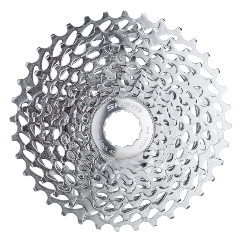10-speed road race cassette. Forged 7000 series aluminum spider. Chromoly cogs with PowerGlide shift technology. ~ 210g (11-23t)
