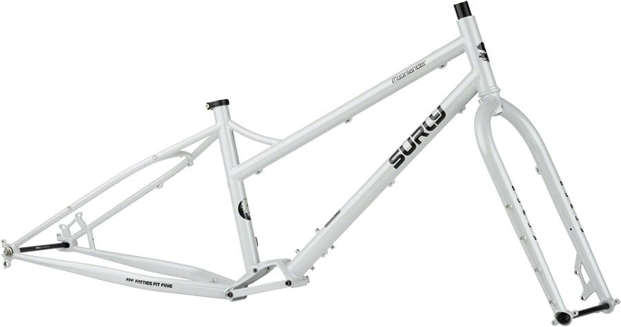 Designed to go where no normal fat bike can the Surly Moonlander is for riders who want otherworldly capabilities on rocky shorelines sand snow and desolate landscapes not yet discovered. While our proprietary 24 x 6.2" tires surpass the limitations of current fat bikes the Moonlander still rides like a normal bike making it easier (and more fun) to navigate previously unrideable terrain. It’s the ultimate choice for explorers who itch for the next great adventure and aren’t afraid of what they might find.Constructed from 100% Surly Chromoly Steel for excellent durability Surly's first bike designed to work exclusively with a Pinion gearbox Frameset is primarily designed for the large volume Surly Molenda Tires on 24 x 100mm Surly Clown Royal Rims Clearance for 24 x 6.2" tires as well as 26 x 5.1" 27.5 x 4.8" and 29 x 3" Comes with rack and fender mounts as well as accessory mounts on both fork blades to enhance cargo capacity Weight distribution across front and rear with a longer back allows for greater stability Features Tektro HD-M285 Hydraulic Disc Brake System Four frame sizes to fit most riders: SM MD LG XL Includes a dropper for easier on and off especially on soft surfaces