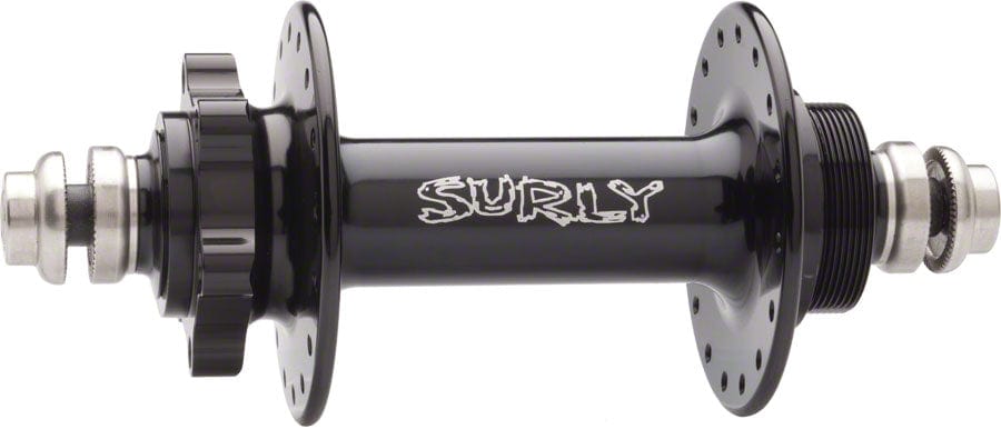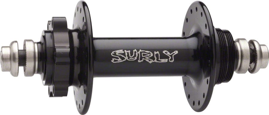 Surly Ultra New Disc Rear Hubs.6061-T6 forged hub shell (same as the Surly New); 6901 bearings Axle is quick release and bolt-on compatible Stainless 6mm bolts are included; quick release skewer is NOT included 4130 CroMoly axle and stainless cones; agressive knurling on cones and bolt caps for reduced slippage New axle/cone system uses uses a specific shouldered axle that allows the hubs to be completely adjustment free and simple to service