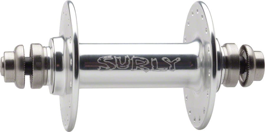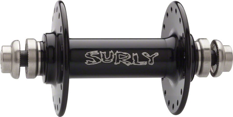 Surly Ultra New Front Hubs Non-Disc.6061-T6 forged hub shell (same as the Surly New); 6901 bearings Axle is quick release and bolt-on compatible Stainless 6mm bolts are included; quick release skewer is NOT included 4130 CroMoly axle and stainless cones; agressive knurling on cones and bolt caps for reduced slippage New axle/cone system uses uses a specific shouldered axle that allows the hubs to be completely adjustment free and simple to service