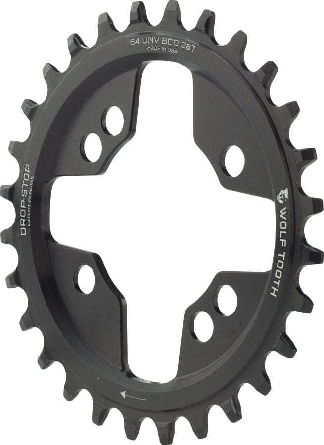 Wolf Tooth 64 BCD Chainring - 28t 64 BCD Universal Mount Drop-Stop A Black