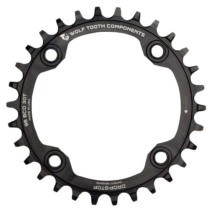 Designed to fit any 96 Symmetric BCD Shimano Cranksets. These rings feature the patent pending Drop-Stop asymmetrical tooth design for the best in wear life mud clearance and chain retention.Features Wolf Tooth's Drop-Stop tooth design for maximum chain retention Drop-Stop chainrings are designed for use with 1x9 1x10 1x11 and 1x12 drivetrains Compatible with all 10- 11- and 12-speed chains with the exception of Shimano 12-speed chains Shimano 12-speed chains require the use of Wolf Tooth's Shimano 12-speed specific chainrings If using a 9-speed drivetrain use a 10-speed chain which will provide a tighter fit for better chain retention Made from 7075-T6 aluminum for long life Chainline is 49mm Chainrings are threaded for standard M8 chainring bolts for no-nut installation