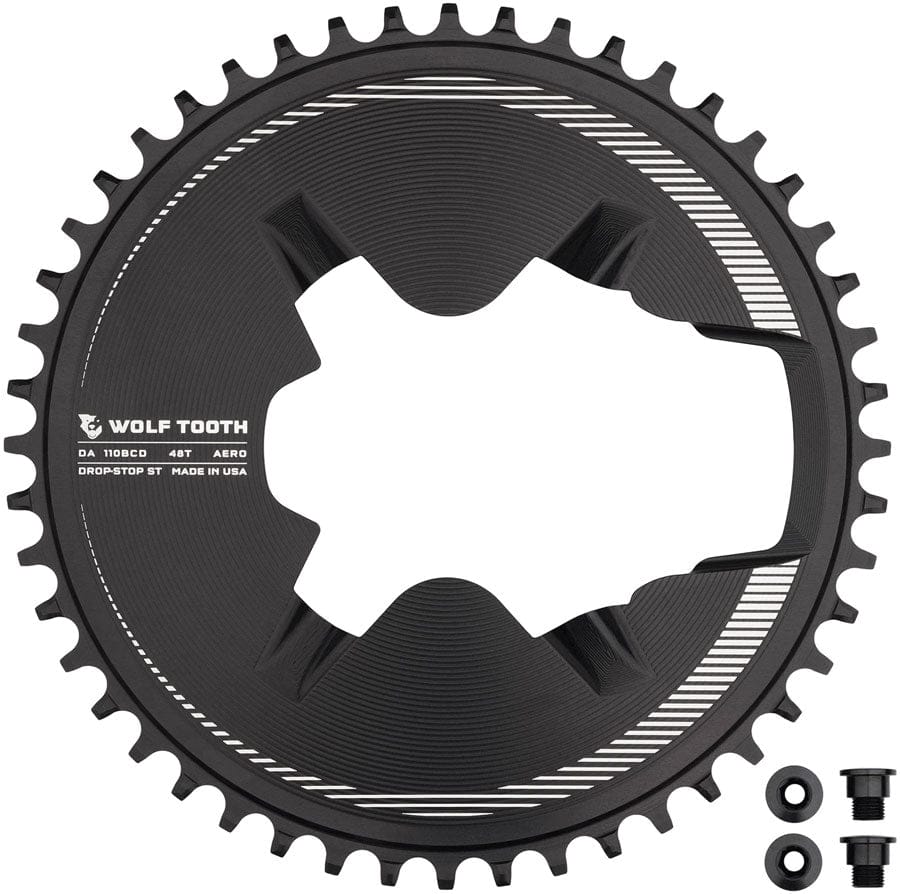 Wolf Tooth Aero Direct Mount 1x Chainring - 48t 4-Bolt Drop-Stop ST Compatible Shimano Dura-Ace R9200/R9200-P Only BLK