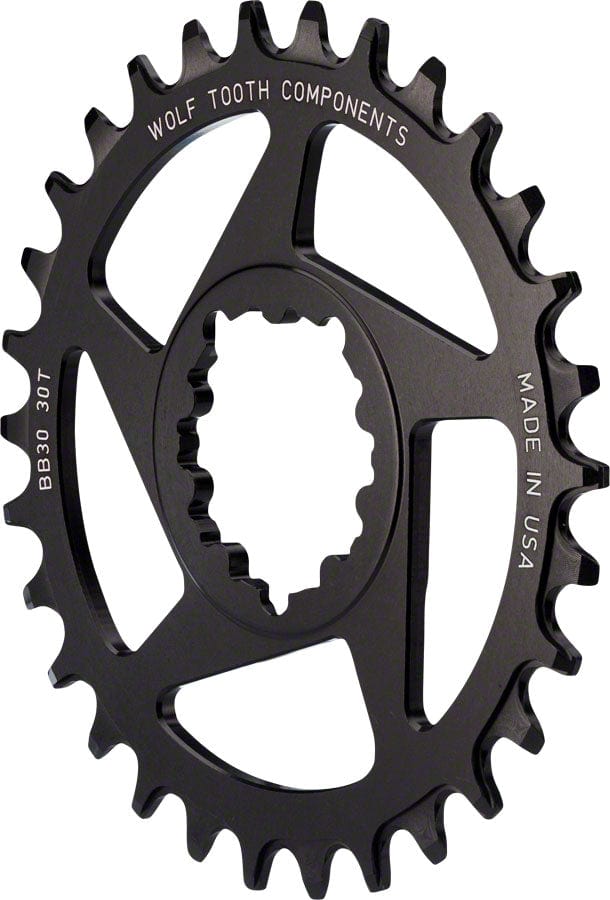 Wolf Tooth Direct Mount Chainring - 30t SRAM Direct Mount Drop-Stop A For BB30 Short Spindle Cranksets 0mm Offset BLK