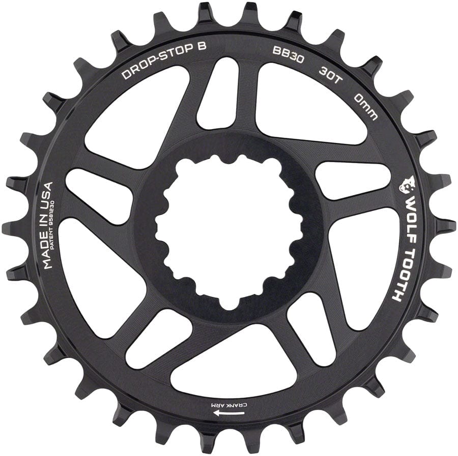 Wolf Tooth Direct Mount Chainring - 30t SRAM Direct Mount Drop-Stop B For BB30 Short Spindle Cranksets 0mm Offset BLK