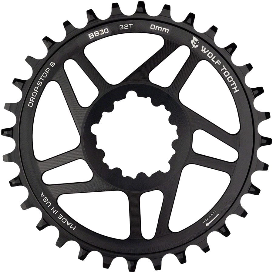 Wolf Tooth Direct Mount Chainring - 32t SRAM Direct Mount Drop-Stop B For BB30 Short Spindle Cranksets 0mm Offset BLK