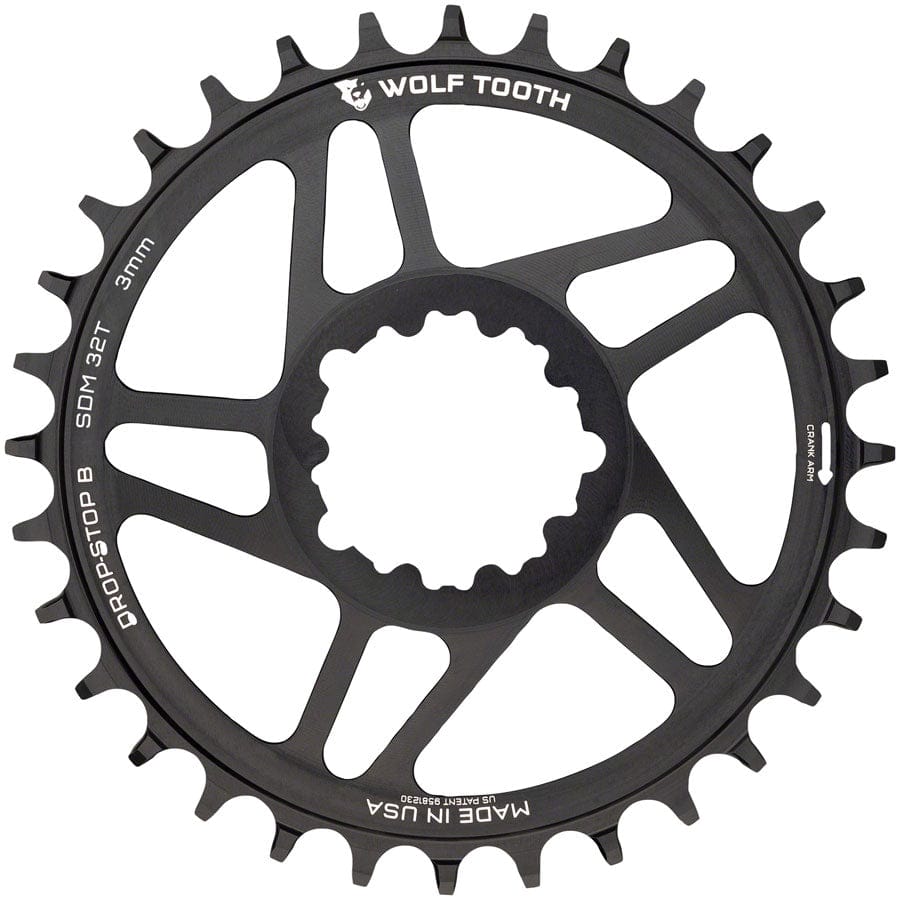 Wolf Tooth Direct Mount Chainring - 32t SRAM Direct Mount Drop-Stop B For SRAM 3-Bolt Boost Cranks 3mm Offset BLK