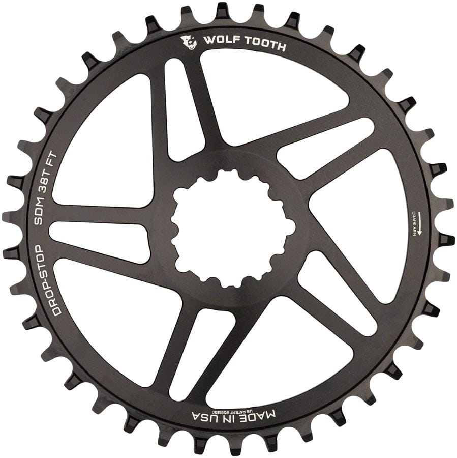 Wolf Tooth Direct Mount Chainring - 38t SRAM Direct Mount For SRAM 3-Bolt 6mm Offset Drop-Stop B Flattop Compatible BLK