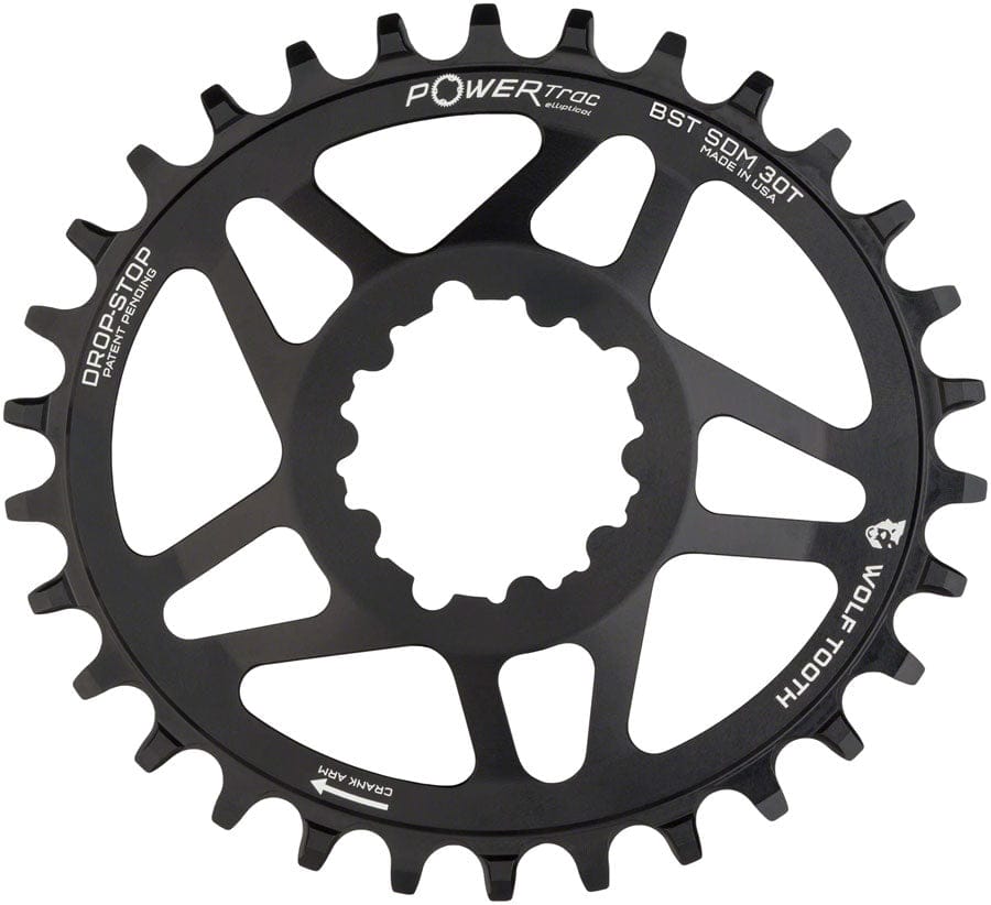 Wolf Tooth Elliptical Direct Mount Chainring - 30t SRAM Direct Mount Drop-Stop A For SRAM 3-Bolt Boost Cranksets 3mm Offset BLK