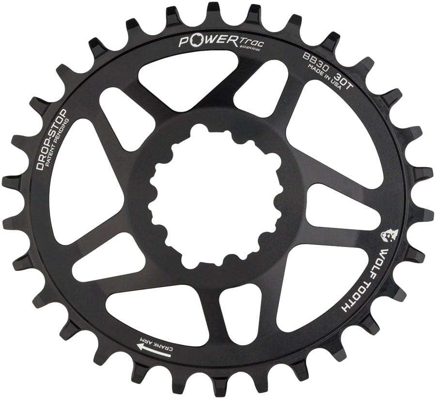 Wolf Tooth Elliptical Direct Mount Chainring - 30t SRAM Direct Mount Drop-Stop A For SRAM BB30 Short Spindle Cranks 0mm Offset BLK