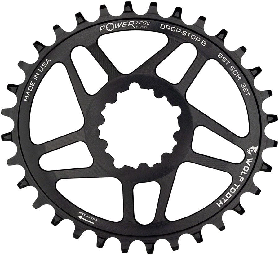 Wolf Tooth Elliptical Direct Mount Chainring - 32t SRAM Direct Mount Drop-Stop B For SRAM 3-Bolt Boost Cranksets 3mm Offset BLK