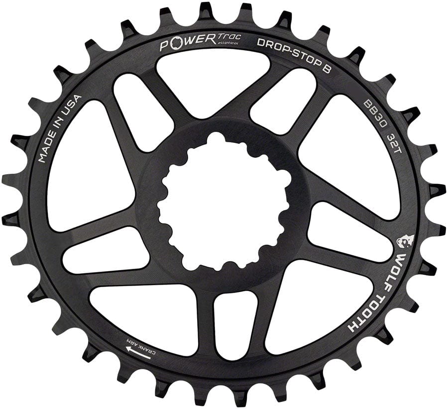 Wolf Tooth Elliptical Direct Mount Chainring - 32t SRAM Direct Mount Drop-Stop B For SRAM BB30 Short Spindle Cranks 0mm Offset BLK