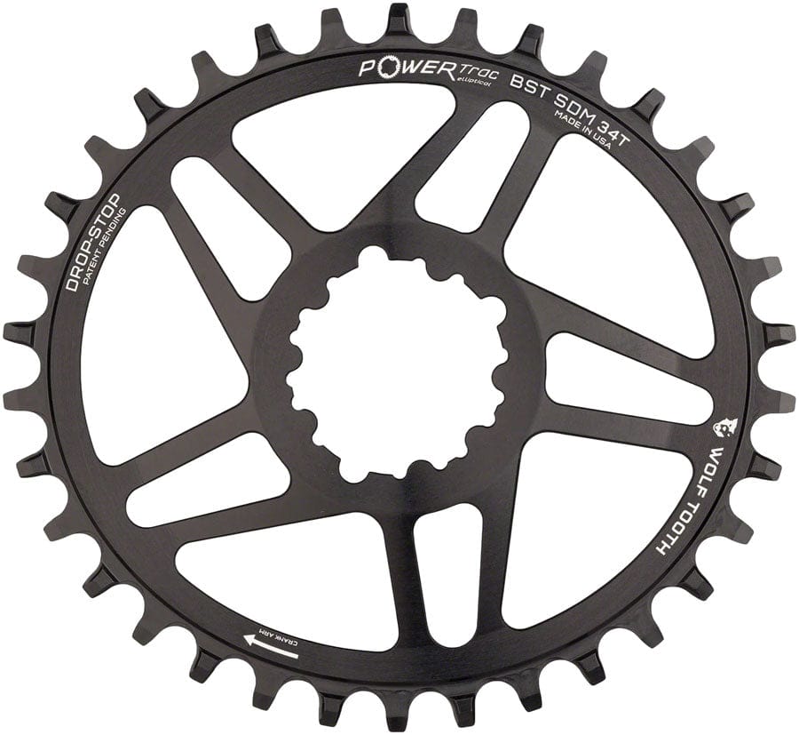 Wolf Tooth Elliptical Direct Mount Chainring - 34t SRAM Direct Mount Drop-Stop A For SRAM 3-Bolt Boost Cranksets 3mm Offset BLK
