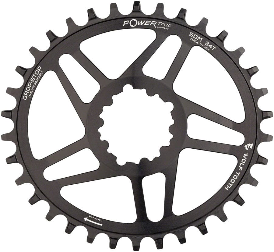 Wolf Tooth Elliptical Direct Mount Chainring - 34t SRAM Direct Mount Drop-Stop For SRAM 3-Bolt Cranksets 6mm Offset BLK