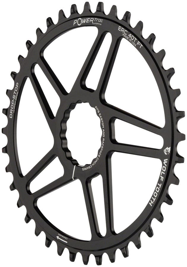 Designed for Easton CINCH cranks with removable spiders. This chainring features the patent pending asymmetrical Drop-Stop tooth design for the best in wear life mud clearance and chain retention.Features Wolf Tooth's Drop-Stop tooth design for maximum chain retention Drop-Stop chainrings are designed for use with 1x9 1x10 1x11 and 1x12 drivetrains