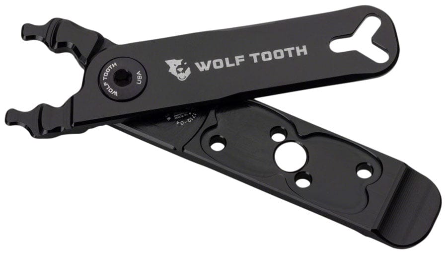 The Masterlink Pliers is a multi-tool developed to provide functions that are not on a typical multi-tool. It is designed to be light and compact so you can carry it with you. This tool serves as a tire lever Presta valve core remover valve stem lock nut wrench and master link pliers. It also provides storage for two master links so you will always be prepared on the trail. Magnets hold the master links securely in place and self closes the tool.Pliers works with 9- 10- 11- and 12-speed master links and chains (not compatible with Campagnolo 12-speed chains) Master Link storage is compatible with SRAM PowerLock Link Shimano Quick-Link KMC Missing Link and other similar master links (not compatible with Connex Links by Wipperman) Master links are not included Tire lever not recommended for use on carbon rims Weight: 38.5g Material: 7075-T6 aluminum Made in the USA