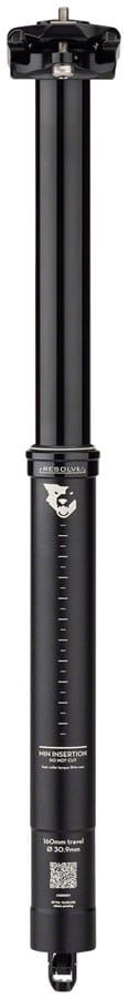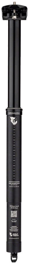 The Resolve Dropper Post uses a unique proprietary design with the patented Resolve self-bleeding cartridge at its core. Any air that gets into the fluid chamber is automatically purged with every up/down motion which means it never sags so there is no need for manual reset or purchase of new cartridges. It has the shortest stack height of any dropper post at 32mm and is one of the lightest dropper posts on the market when looking at grams per millimeter of travel.Designed developed and assembled at Wolf Tooth in Minnesota USA with CNC machined parts 100% user-serviceable by any experienced home bike mechanic 7075 and 7050 aluminum for the structural parts Self-bleeding cartridge that removes air from the fluid chamber with every actuation Short insertion length is vital for smaller bikes frames with curved seat tubes and frames with seat tubes that have bottle bosses Cable actuated with infinite height adjustment lever sold separately Spacers for travel adjustment available individually or as kits