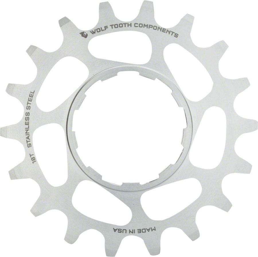 These Wolf Tooth stainless steel single speed cogs feature extra tall teeth for reliable chain retention when using chain tensioners and are machined from 416 stainless steel billet with heat treating and electropolishing post processing for durability and corrosion resistance.Made from hardened and electropolished 416 stainless steel Optimized for use with 91011 speed chains but suitable for use with some 12-speed chains Reversible and 4.5mm wide at the base to help prevent cog from damaging your freehub body Fits Shimano Hyperglide style freehub splines Not compatible with Shimano Microspline or SRAM XD freehubs Not compatible with Campagnolo 13-speed chains